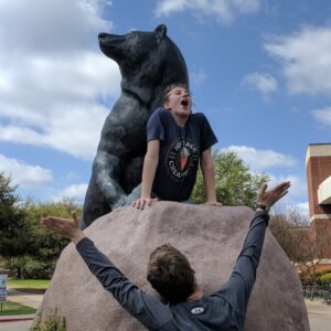 “This is me at our annual family vacation- it was the NC mountains. Note the bear less than 20 feet behind me. It just raises all kinds of questions. And explains a lot.”