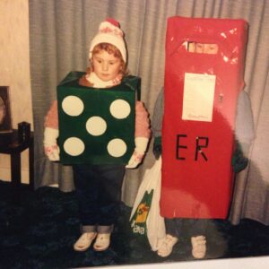 “We didn’t celebrate Halloween at our house. We begged to go trick-or-treating, so this was the compromise. Dad went with us door to door as the Prophet of Doom.”