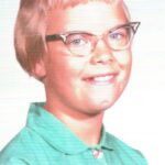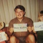 “My family used to play Giggle Belly.  You start by laying with your head on someones stomach.  When everyone is in place the first person says ‘ha’, the person on their stomach says ‘ha, ha’ and so on.  I am in the teal sweater with the acid washed jeans and 1990’s glasses.”