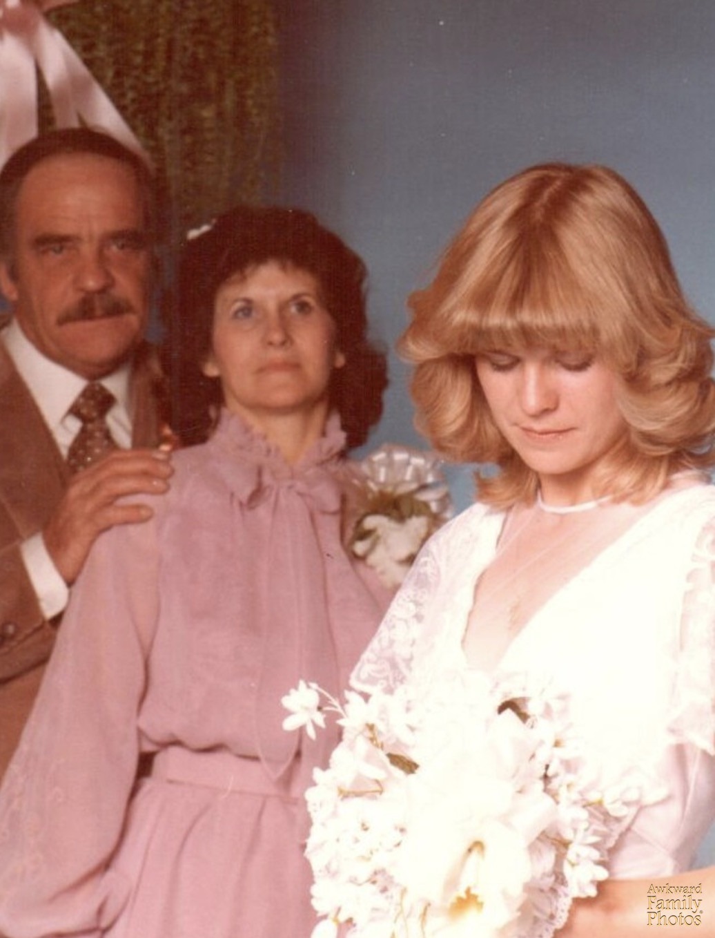 “The pic is from my wedding day and the photographer was doing solo shots of my wife in her wedding dress, I was hanging out with the bridesmaids watching and told them thanks for coming out and gave them both a hug as soon as I did that they wanted a couple picture of my wife and I and called me over but we were in mid hug and my wife turned around so they snapped a picture of the 4 of us. My wife had a WTF look on her face that was priceless.”