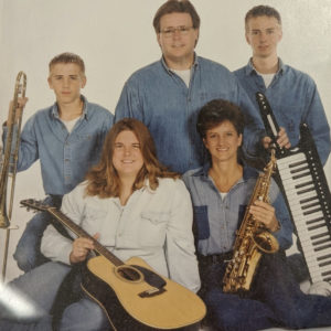 “Circa 1984. Dad felt my school band photo failed to capture the spirit of my role in the North Stafford High School marching band, so he decided to stage a photo of me in my uniform…in the woods…in a chair that just happened to be there…without my sax. I think I look like the young regent of Sherwood Forest, perhaps its constable, given the bobby hat. In the truest sense of the term, this is an awkward family photo.”