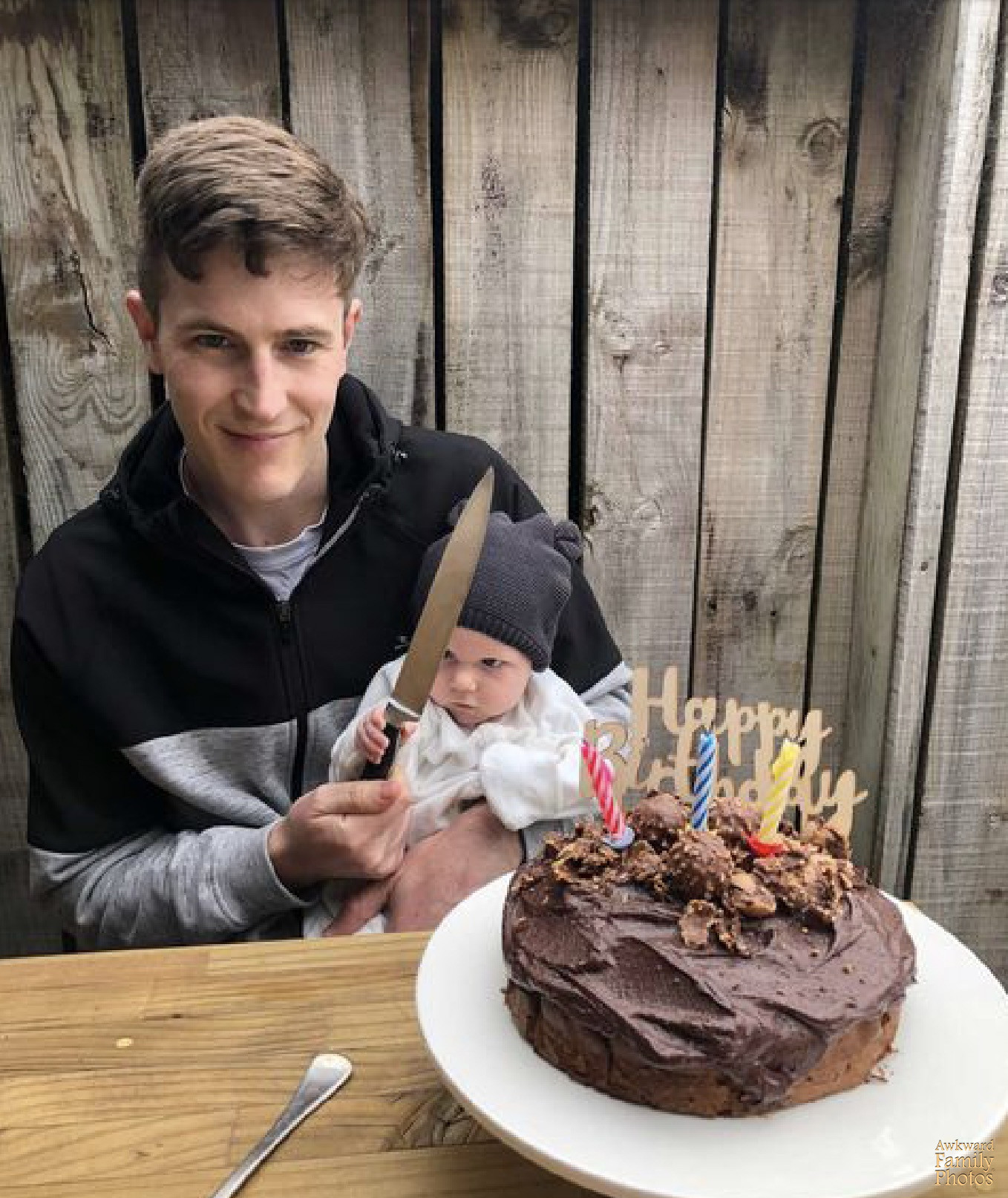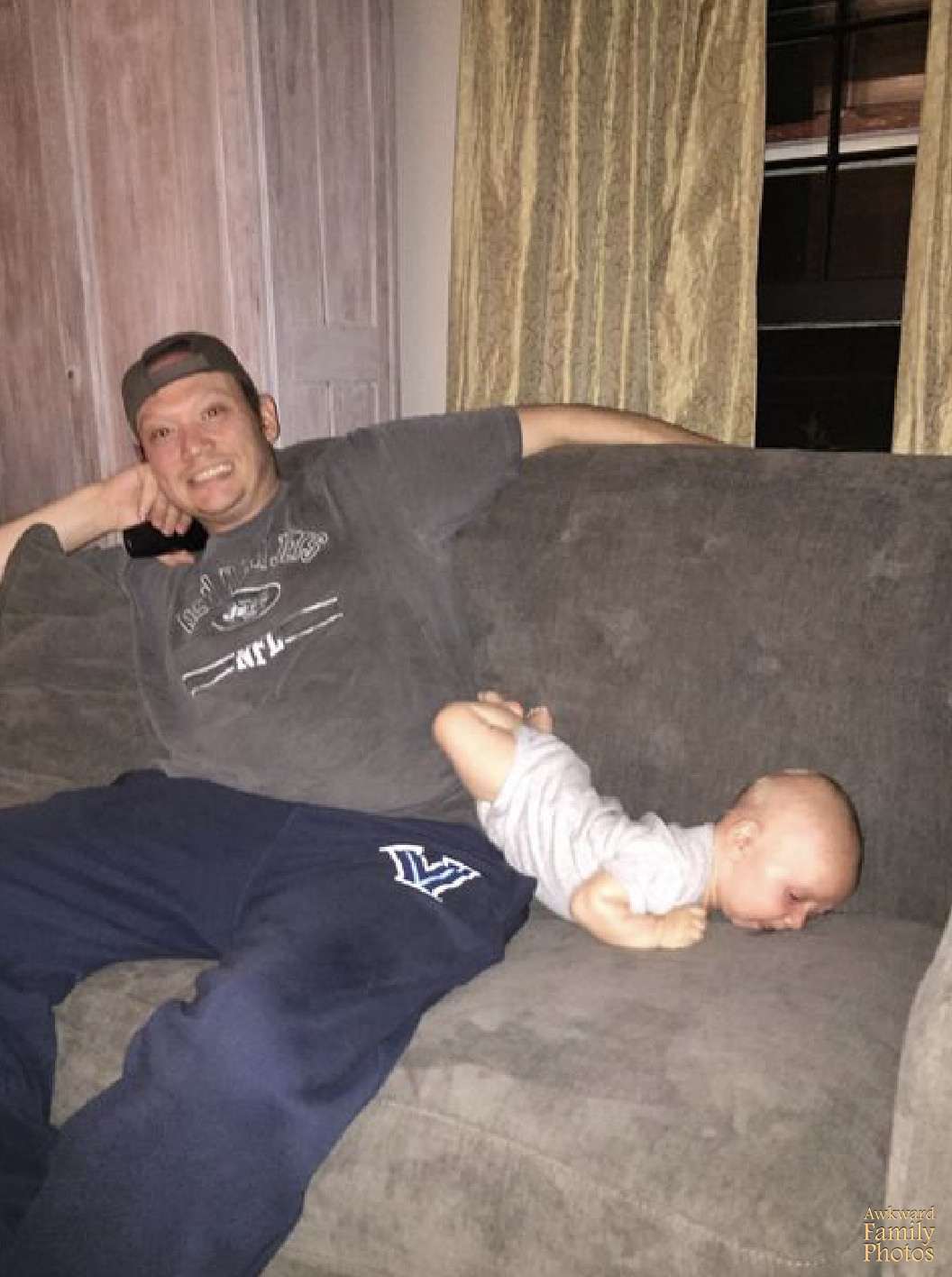 “The photographer captures the exact moment Dad feels the shot while Mom just smiles for the camera…. now this is an awkward announcement photo!”