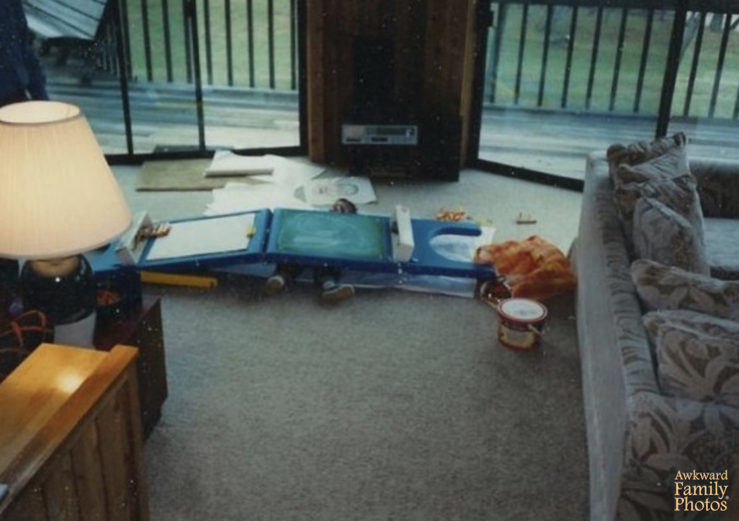 “I’m the boy sitting next to the two Umpa Lumpas (sisters), with my mom and brother right behind me. Soon after this fun-filled afternoon, my sister dropped a glass bottle of milk on my foot and I got 24 stitches.”
