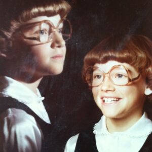 “Our 1986 Easter was a festive affair. Here we are all dressed up with my sister beating the tar out of my brother while I look in with my amazing feathered hair. Oh, and Dad was busy taking the picture instead of rescuing my brother.”
