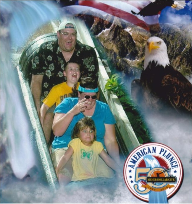 We went to Silver Dollar City for vacation and rode the Log Flume. Everyone was having a great time except my daughter. Of course we had to buy the picture from the photo kiosk.”
