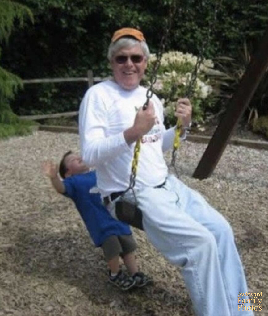 “My son got a litte too close to Grandpa while he was swinging and paid the price :)”