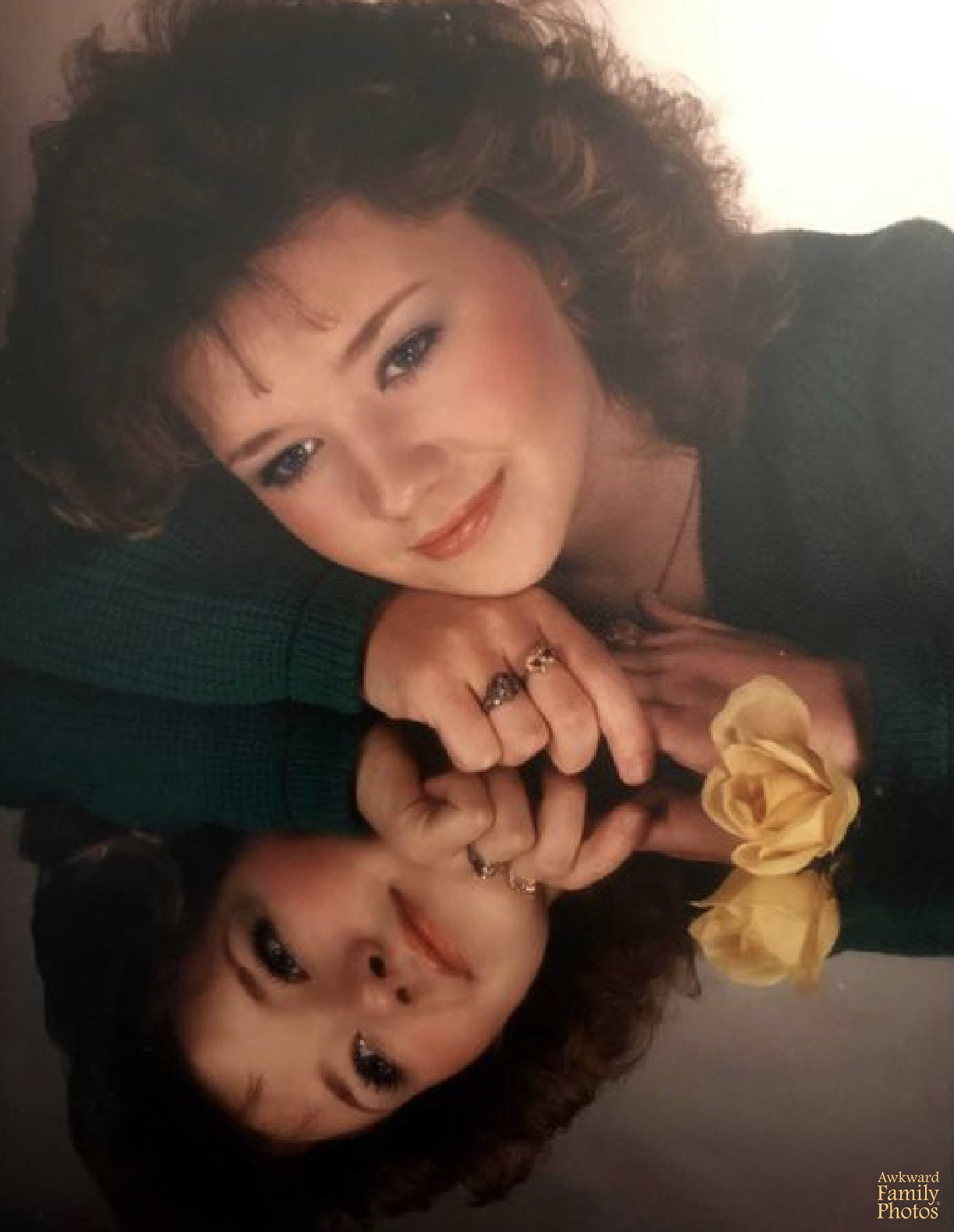 “My great-grandmother worked for a photography studio in the 80’s. She was watching us one day and decided to surprise my mother with professional photos of the three of us. This gem was one of the pictures. It’s safe to say that my mother never put this one in a photo frame and it’s the center of family laughter when we bring out the photo albums around the holidays. I love how my sisters look so cute in the corner of the photo while I am in a food coma floating in the sky.”