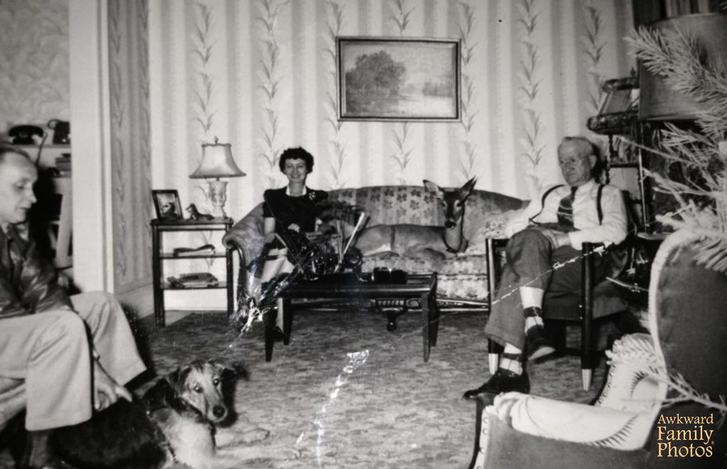 “This was my Christening, June 1971. I’m the baby obviously, my Godmother is holding me, my parents are next to her. Their hideous outfits aren’t the “awkward” part of this photo. In the background, my grandmother is pulling my sister’s hair while my brother is recovering from a smack! All of this right on the front steps of a church.”