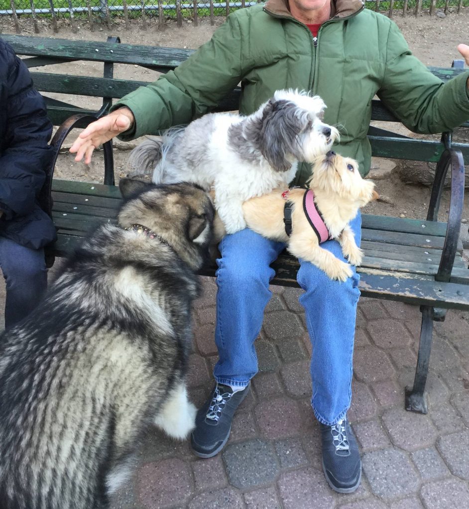 “My dad came to the dog park with my dog and me, and this happened on his lap.”
