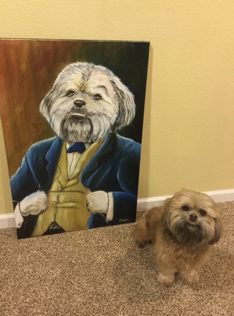 “It is a rare occasion when we can gather all grown children, significant others, grandkids AND dogs for a family picture. We did it! Sort of.”