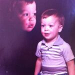 “I’m the awkward little girl in the front. The wolf was borrowed from the Bell Museum of Natural History and my mom thought it would make a nice subject for a Christmas card. She also included a poem about wolves in the woods in the card as well as this gem. Our dog, Dynamite, was terrified.”