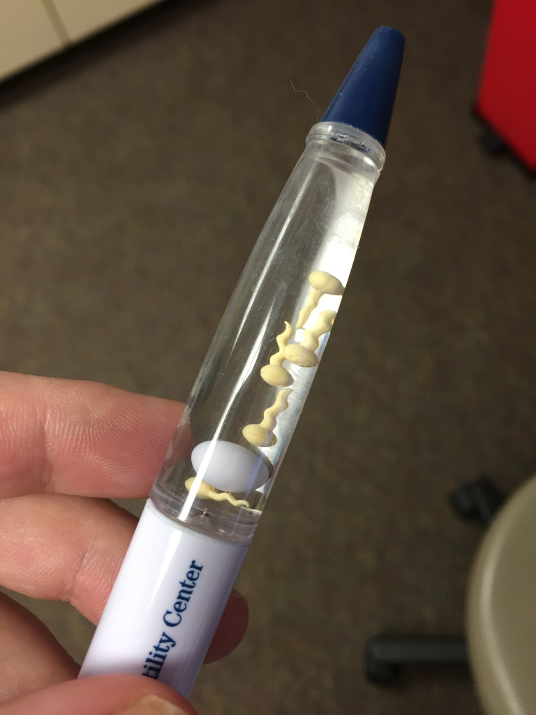 “My wife is pregnant and today was her first ultrasound. This was the doctor’s pen.”
