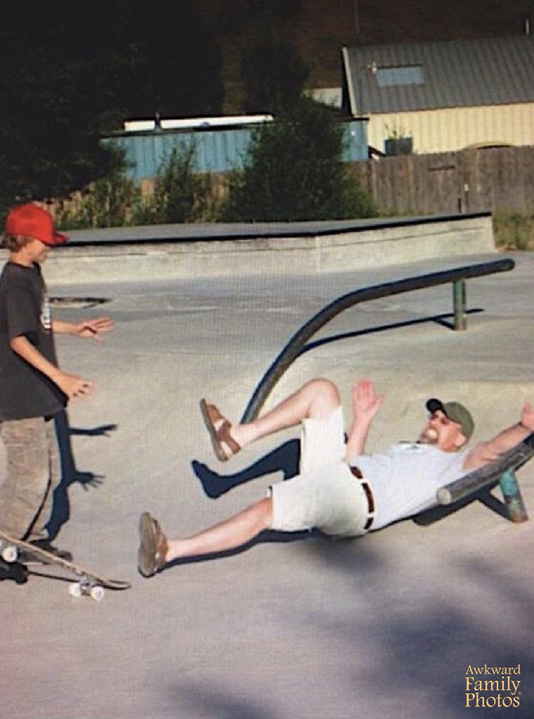 “Teaching my dad how to skateboard. My mom must have known how this was going to end.”