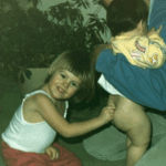 “1985 or 1986. From left to right, Mom, Aunt, Uncle, Grandma, Grandpa, and me on Grandma’s lap.”