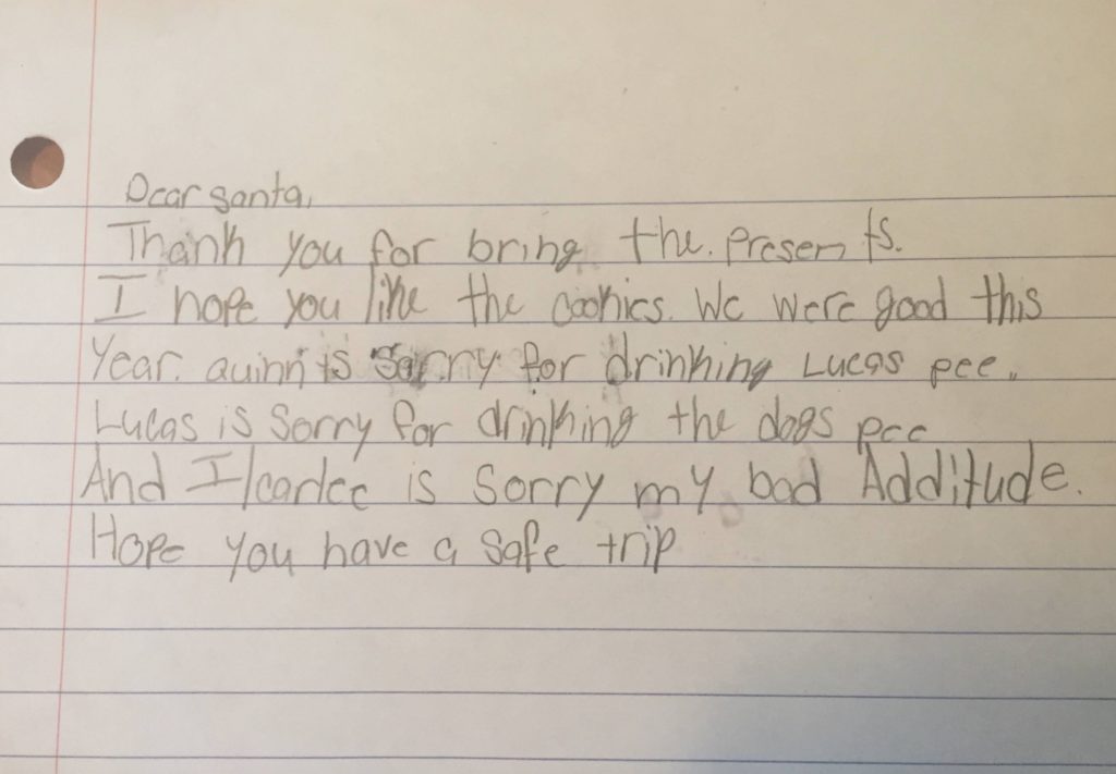 “My kid’s letter to Santa. I’m really messing up as a parent.”