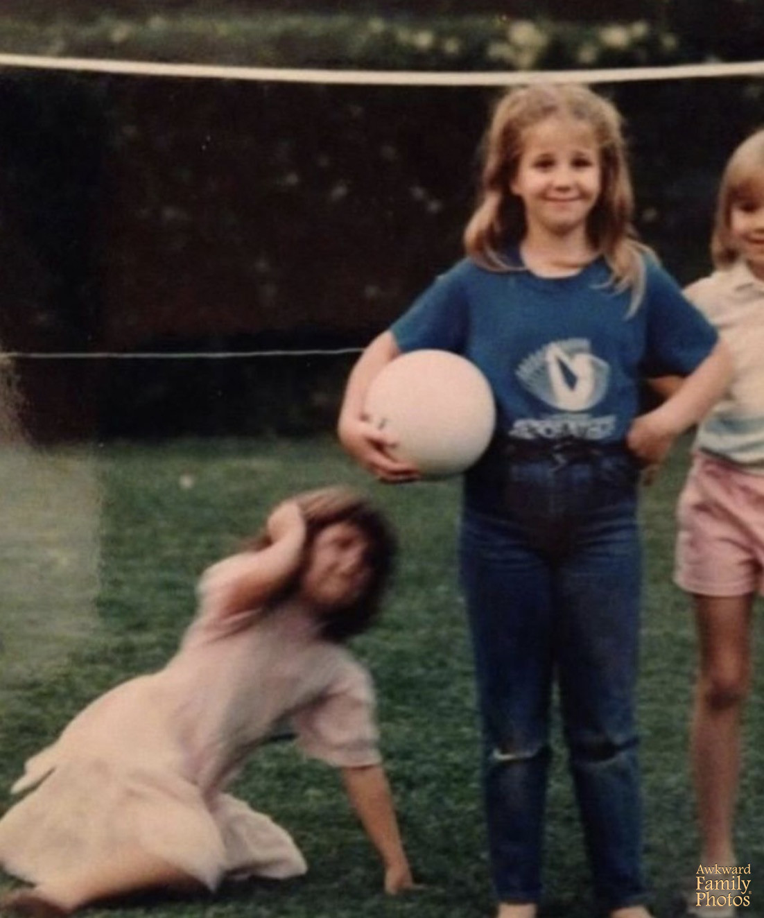“What little sister doesn’t want a snowball right to the face? I was so excited playing with big sis in the snow for the first time, no clue she’d aim straight for the money maker.”