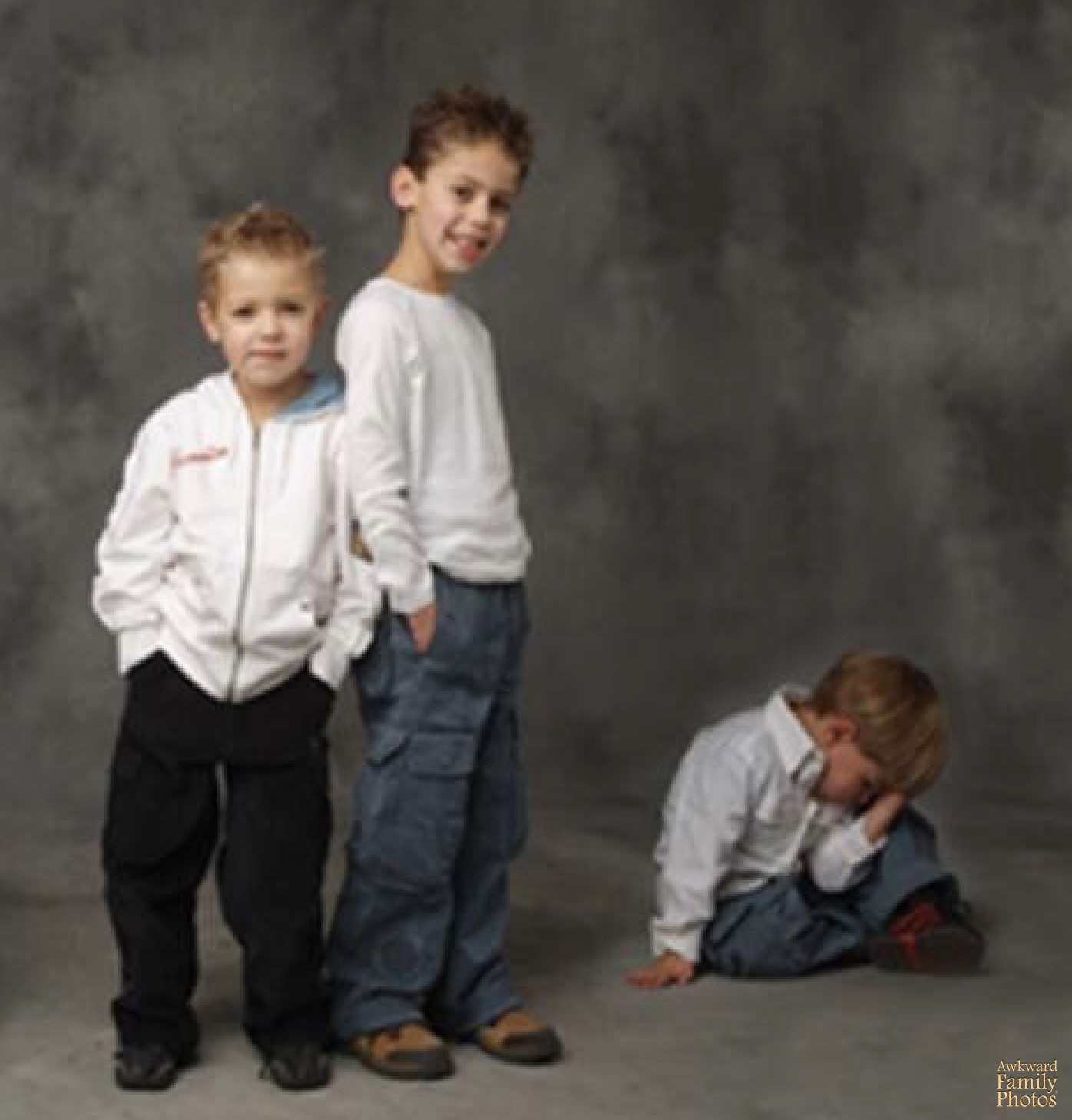 “Pictured here: my sweet, loving grandmother, my sister, her husband and their cute baby boy. The nursing home set up a photo studio and invited the families of residents to come in for a FREE family portrait for their annual ‘Family Appreciation Day.” This is the photo we got! It’s inexplicable that the photographer let this one slide, but now we have this delightfully tragic image to feel weird about for years to come. Thanks?”