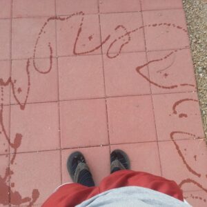 “A lovely picture I drew of me, my cousins, and brother throwing my mother into shark-infested waters. I distinctly remember adding stripes to the shark because I knew tiger sharks were known to be aggressive. This is neatly labeled on the back ‘Sarah: 7 years old’ and lives on my parent’s fridge. To this day, I have no idea why people weren’t more concerned.”