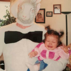 “This is the photo my Grandmother sent out as her Xmas card in the early 70s. She didn’t like my Dad’s not-smiling face so she cut out one from a different picture, pasted it in place and sent it to the printers. Note the glue on my dad’s face where grandma had attempted to affix the smiling face before it shifted during printing completely unintentionally. Still one of the funniest things ever sent to more than 200 friends and family.”