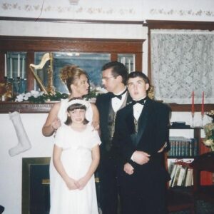 “My phone has a ‘wide selfie’ feature similar to panorama. You need to sit still for it to work. My girlfriend sneezed as we were taking it.”