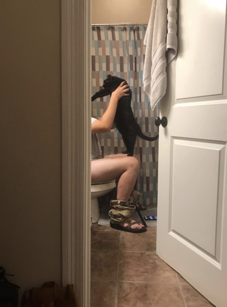 “My wife was trying to get a cute picture of our baby crawling. She didn’t notice what was going on in the background.”