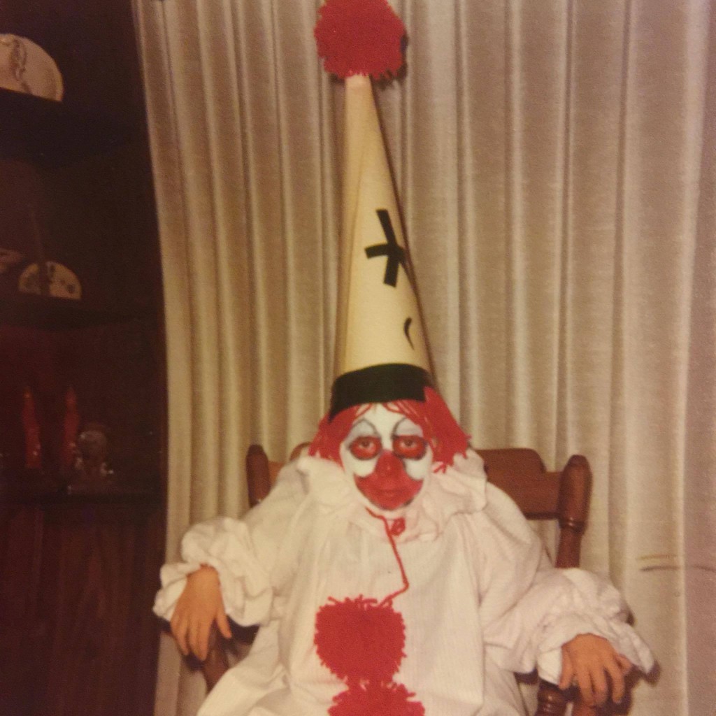 “I found these while going through old photo albums this weekend. Halloween 1979, I was a canvas for my older sister’s creativity. And clearly, I was thrilled about it. And yes, clowns freak me out 37 years later!”