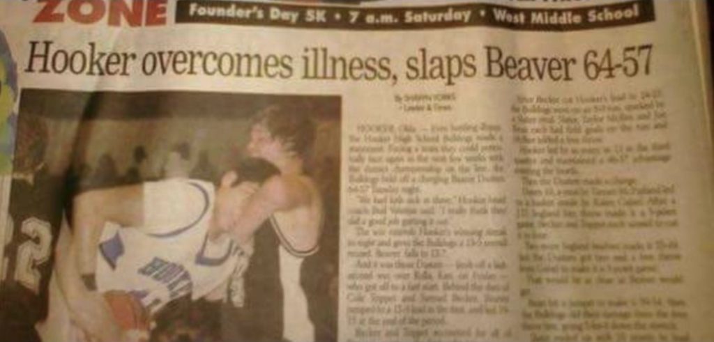 “So I live near a city named Hooker and another named Beaver. They play each other in HS sports.”