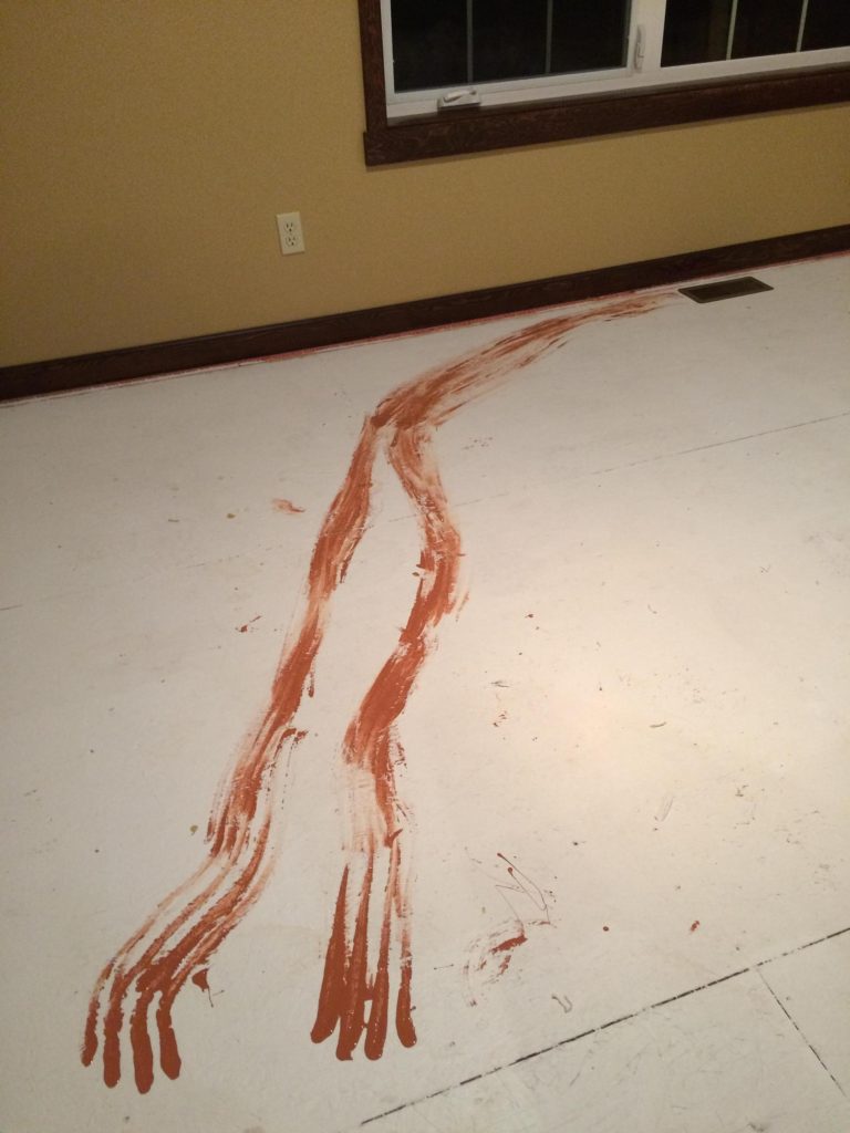 “My Aunt’s lil joke for the next person who tears up the carpet in her home.”
