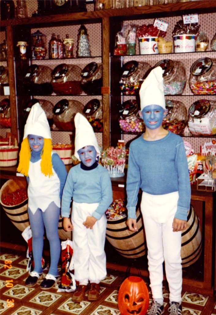 “My brother, sister, and I dressed as Smurfs. Guess which one is me?”