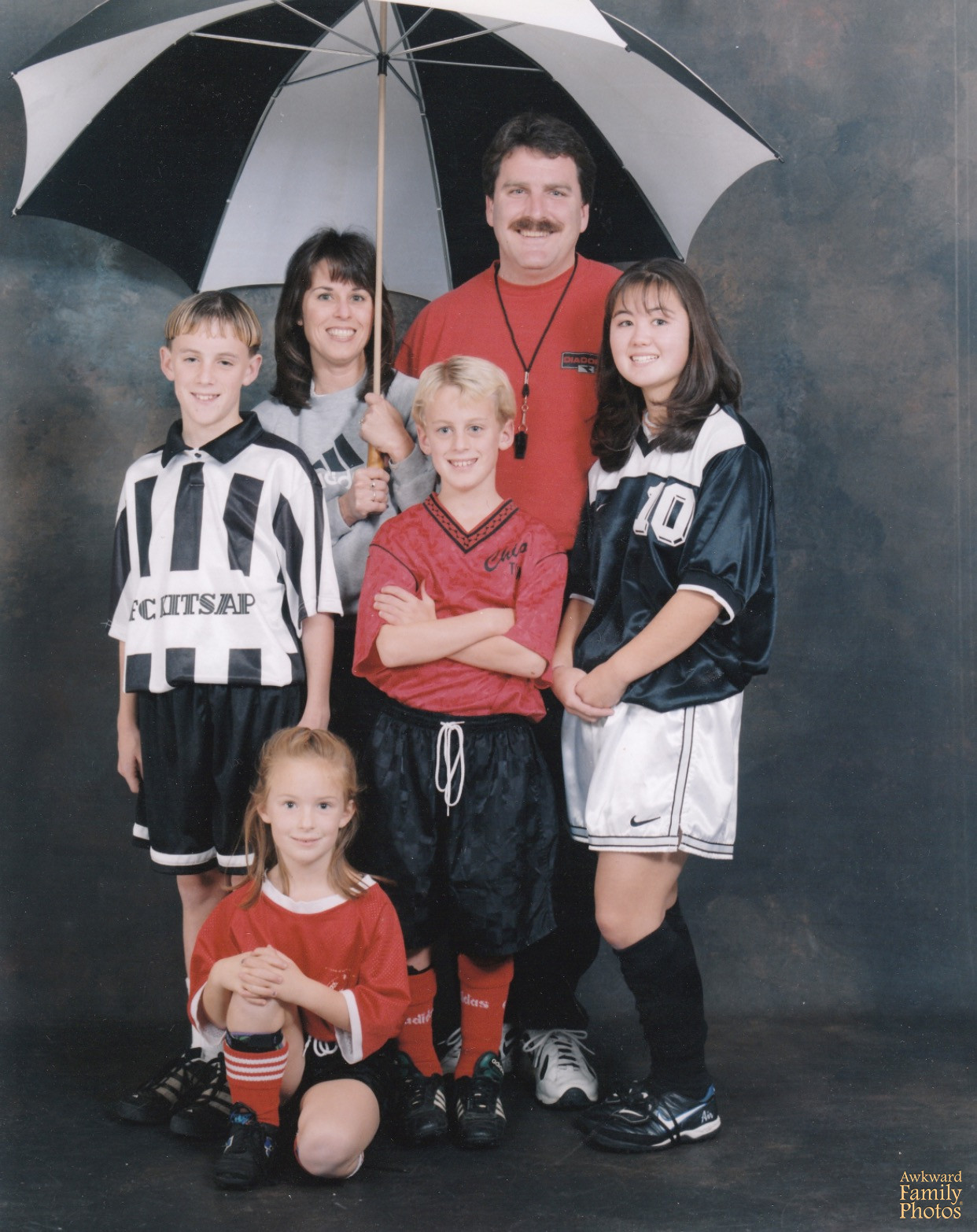 “We had our family photos last week and our oldest daughter was super upset because she got kicked in the face. Nobody saw it happen and we told her to get over it. Got these edited today and her reaction to getting kicked in the face is PERFECT!”