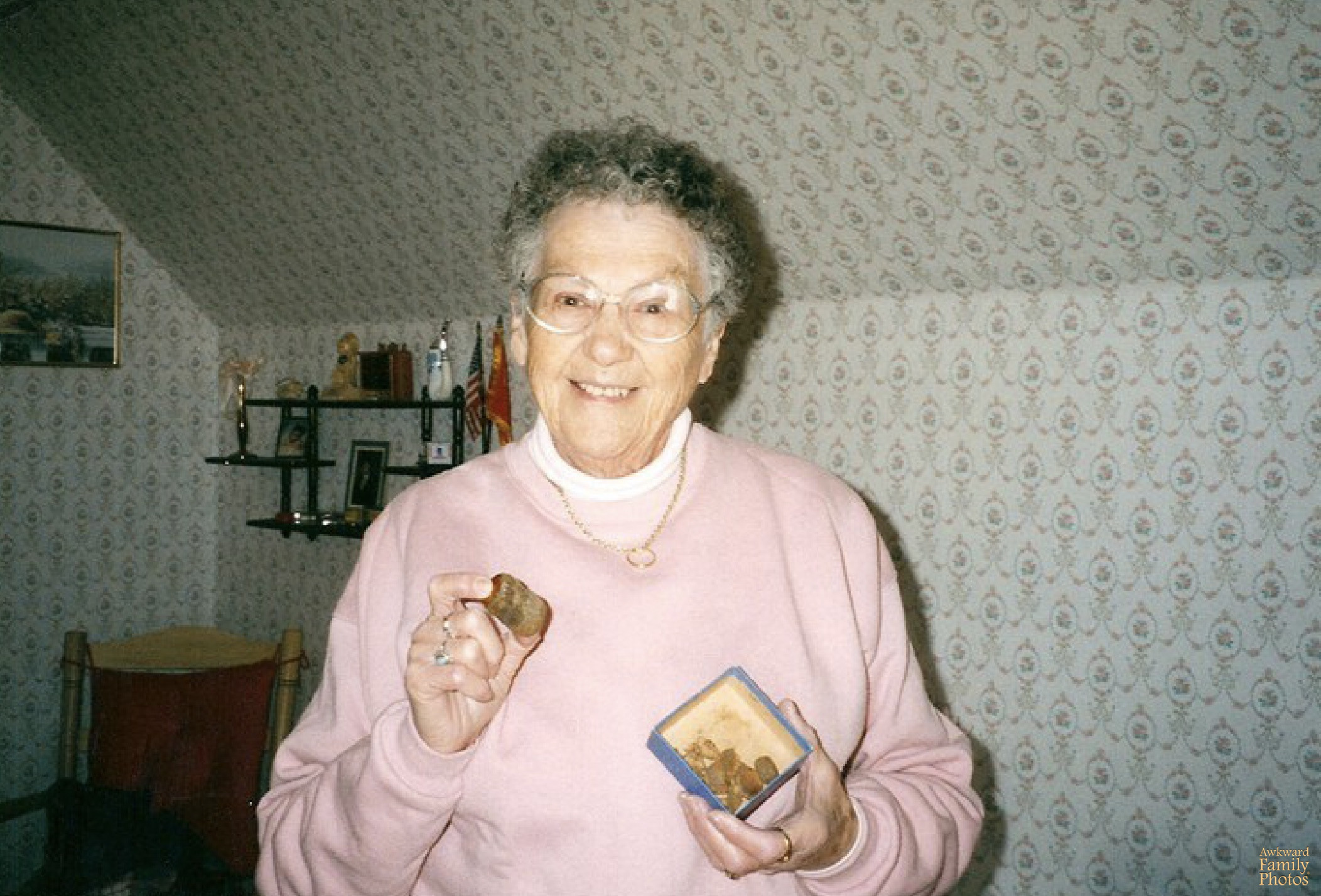 “My Grandmother trying to tell our dog to look into the camera after she fed her a nice dog treat. Germany, early 90s.”