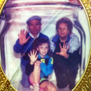 “I don’t know what this pose is all about. It looks like our backs hurt or we are all going to puke in the next 10 seconds. All my friends say it looks like an advert for a family-TV-Show in the early 90s but I think the photo is from 2001.”