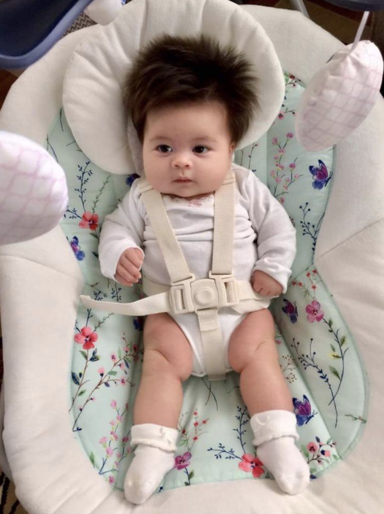 “As a bald man, I’m very proud of my 2 month old’s hair.”