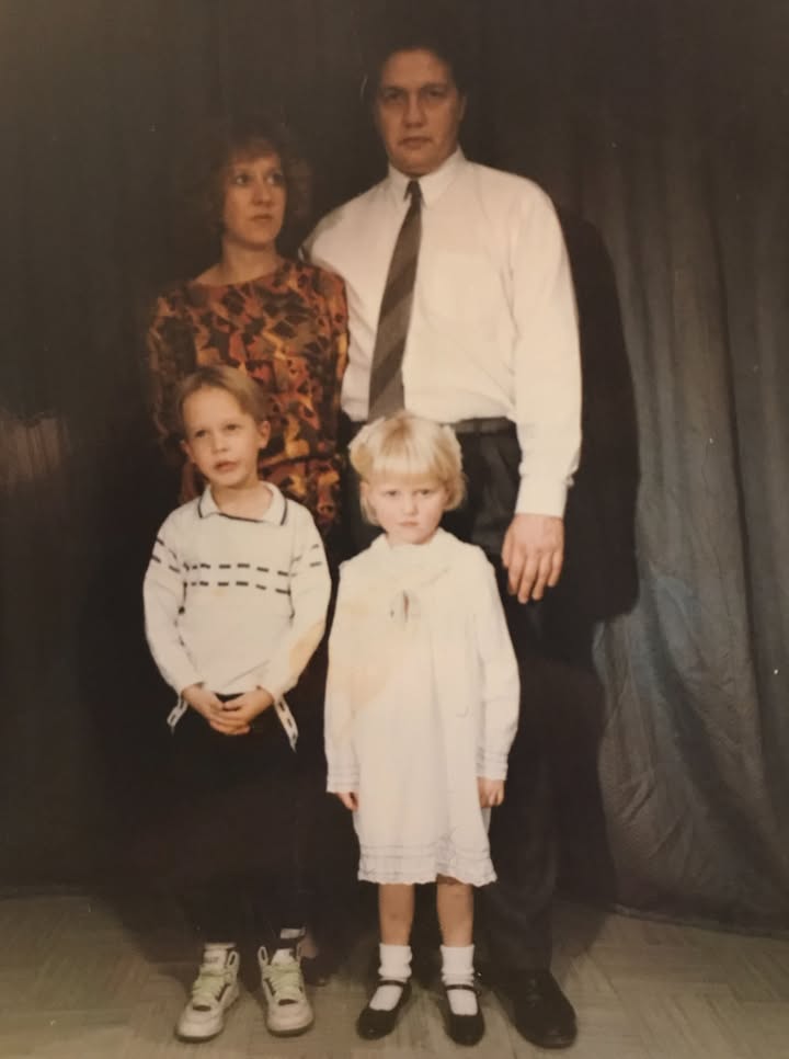 “Here’s our extra 90s family pic. I remember being very upset my shoes were dirty but my Mom said it’s not about my shoes, it’s about the denim. And that’s good ole nana in the middle.”