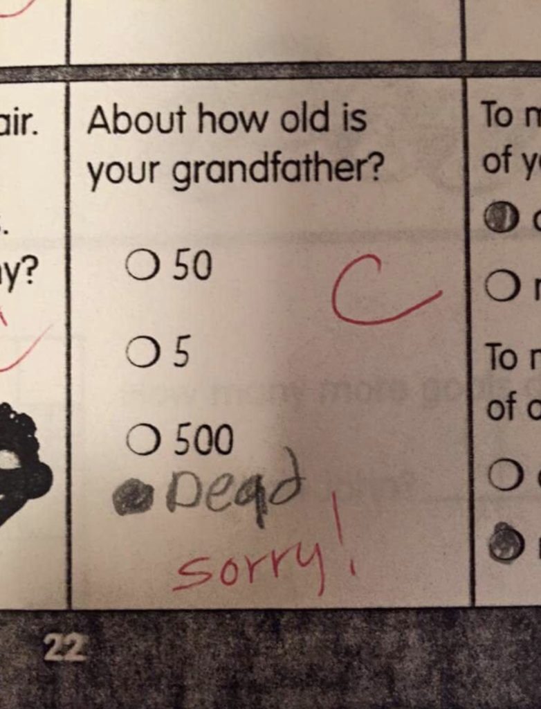 “My mom found one of my old tests from over 20 years ago when I was just a wee lad.”