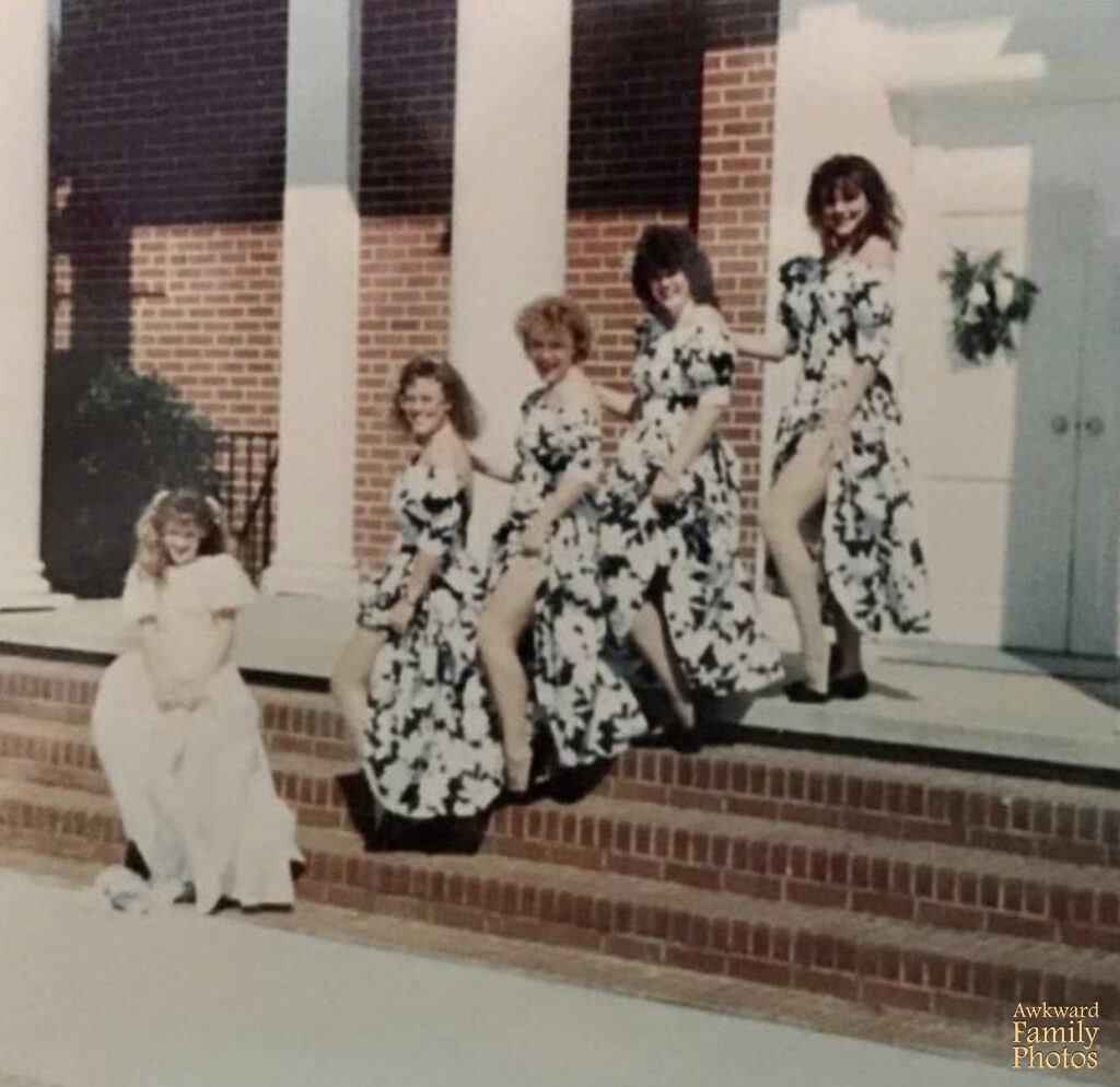“Church directory photo circa 1991 I don’t know what’s more awkward- the leaning back look over the shoulder pose or the hair.”
