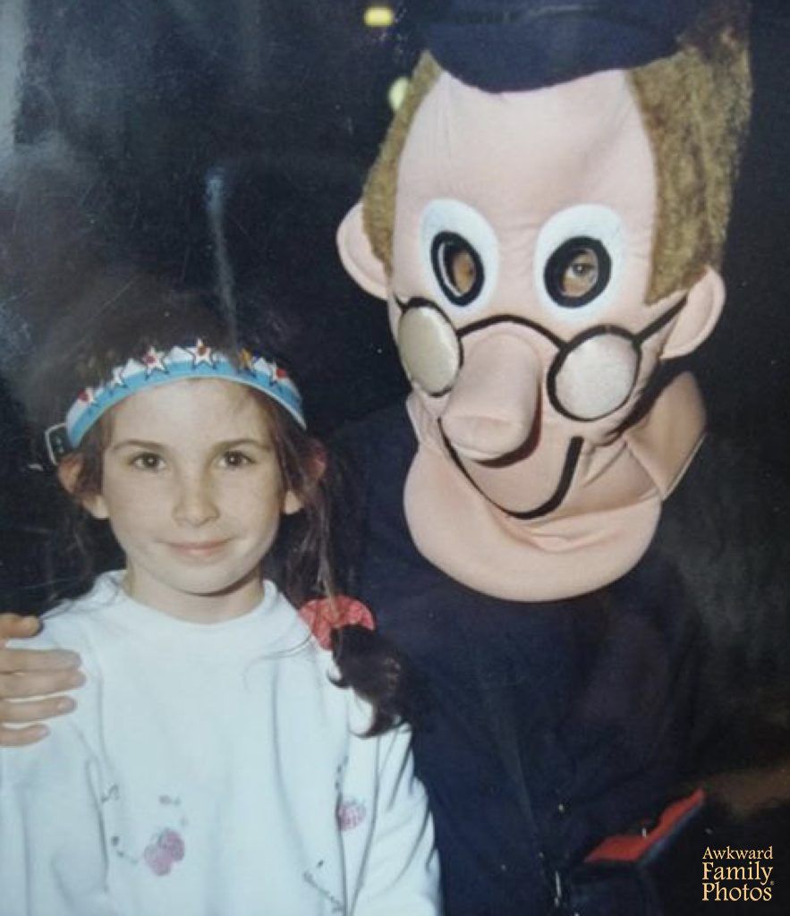 “Me age 7 with the creepiest Postman Pat I have EVER seen. Maeve, Kent, England.”