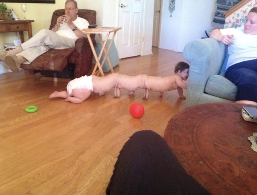 “My uncle, gently holding me as an infant. Tiny me doesn’t look very comforted.”