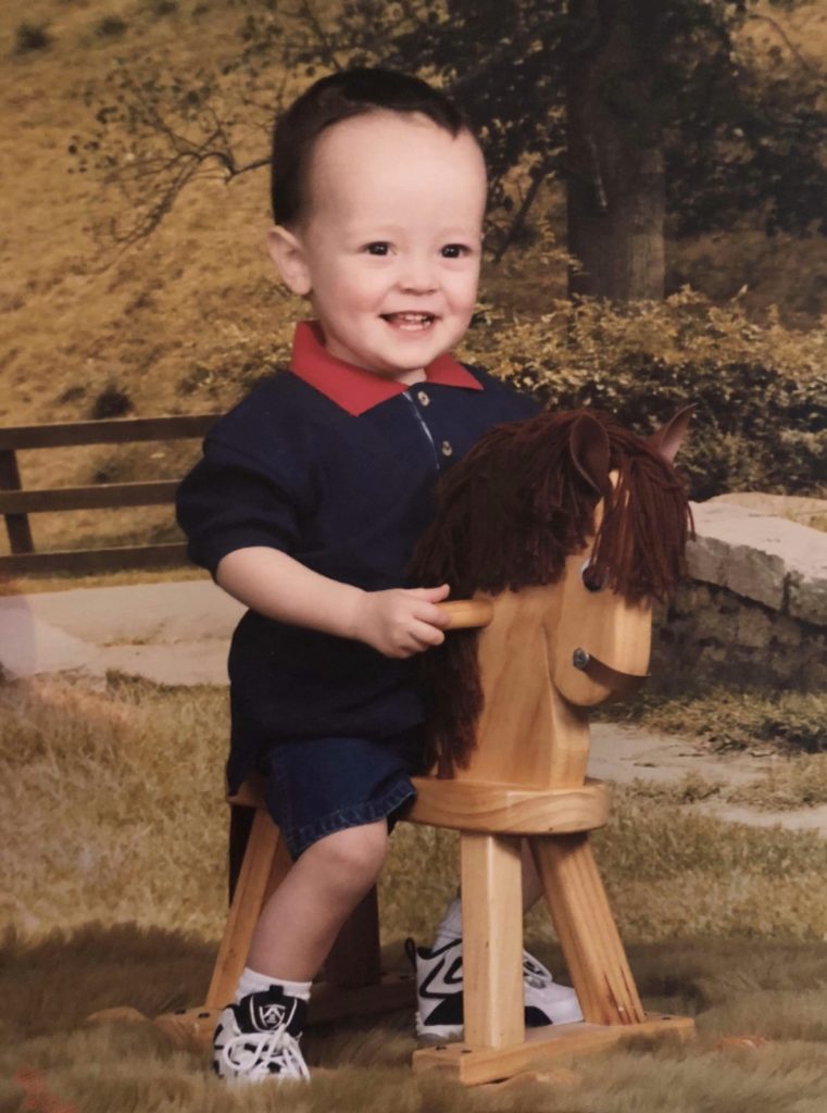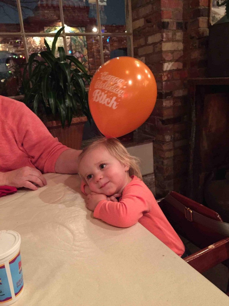 “My wife and my daughter, circa one year old. My daughter does not like having her picture taken. Especially when eating biscuits. She looks like a little rugby player.”