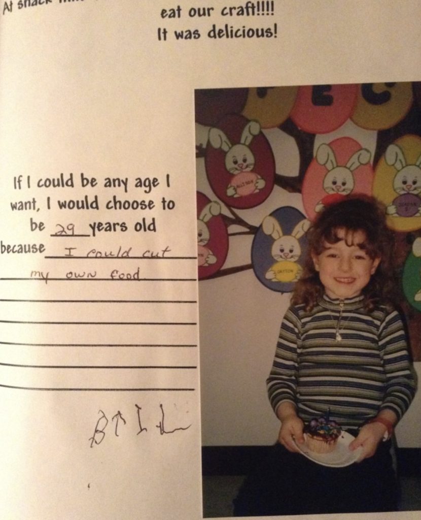 “My kindergarten photo, discovered in my parents attic today during a return visit home. Nailed it, Mom and Dad.”