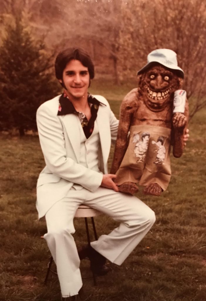 “My dad circa 1977 looking fly with his little buddy Beanie.”