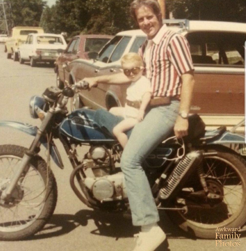 “Back when my dad strapped me in his belt for a good safe ride!”