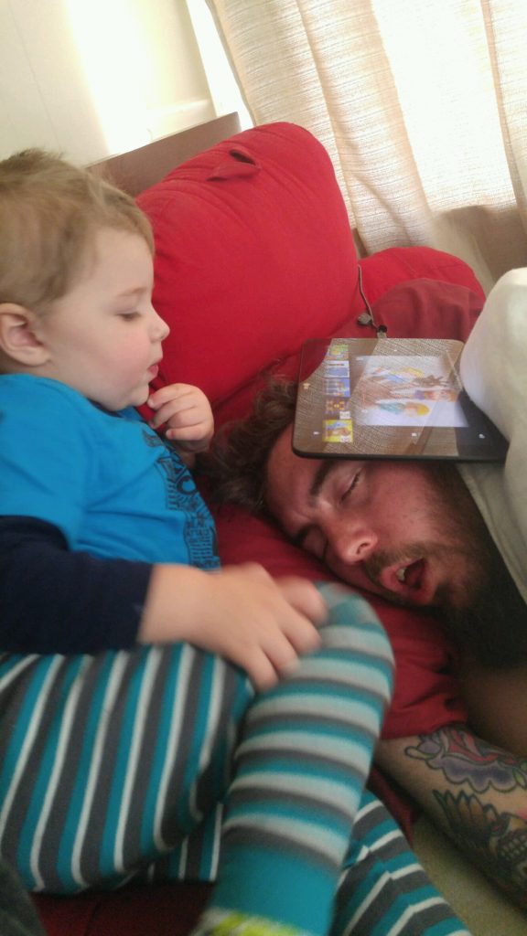 “My wife tried to let me sleep in today but my son wanted to use the tablet.”