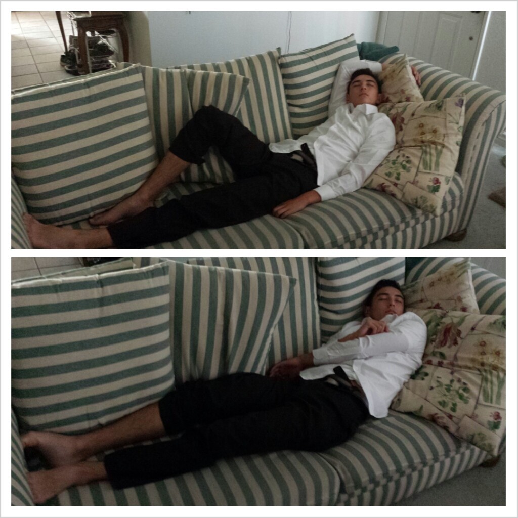 “My son has two ways of sleeping: Male Model and Rapper. Both were on display this afternoon.”