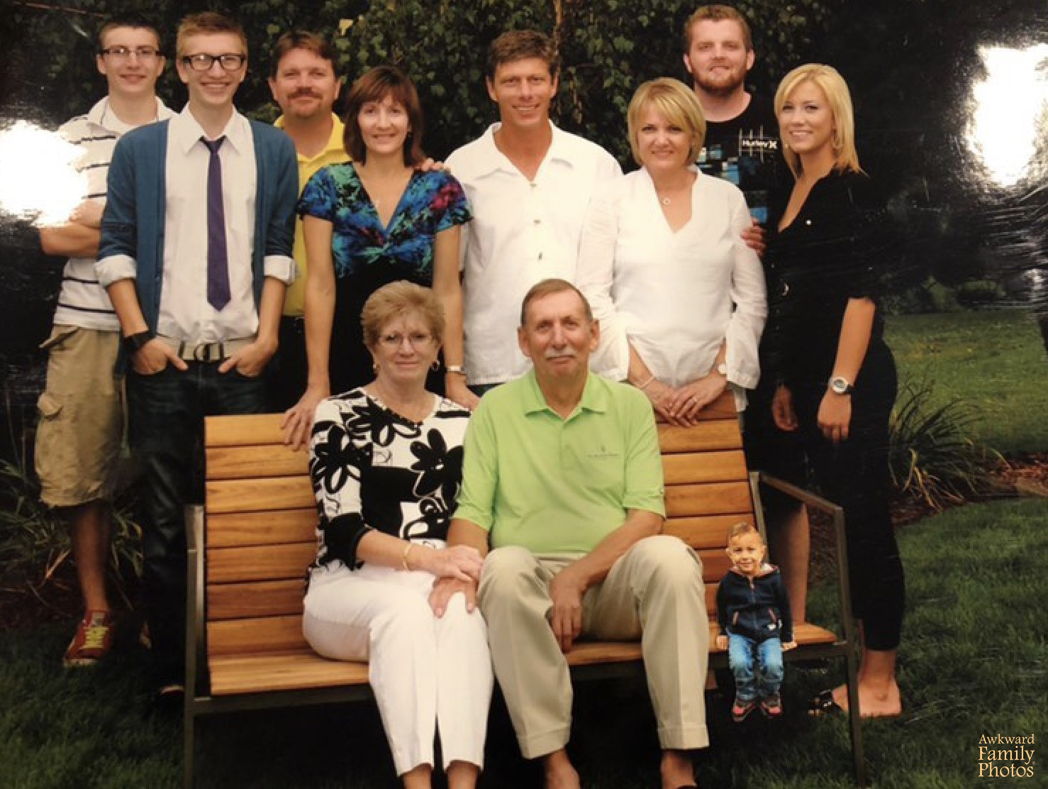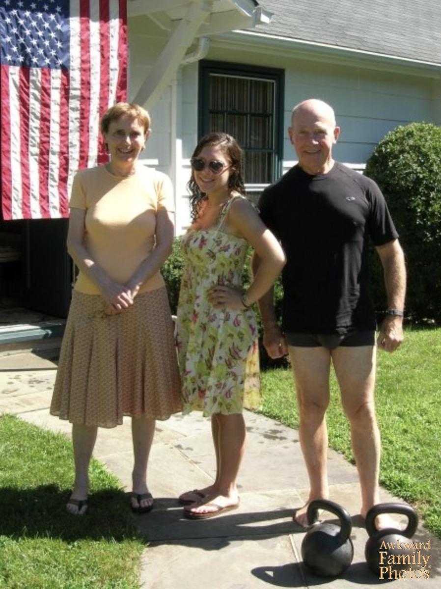 “This is my grandfather. The butt on the left is his long time girlfriend, and the butt on the right is my aunt. She is a physical therapist trying to help her with her back pain.”