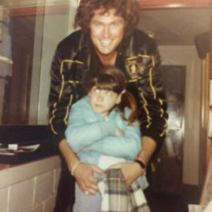 “Two-year-old me being babysat by my five-year-old brother and a rope while my family partied inside.”