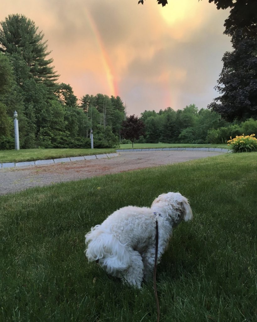 “I was taking a picture of my dog with the rainbow in the background and he decided to poop.”