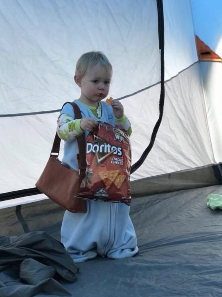 “Daughter’s first camping trip. This is how she wakes me up at 6:15 in the morning.”