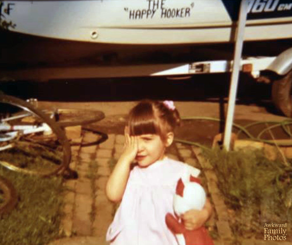 “Around 1978. (Age 4) Dressed for church. My dad’s bass boat in the background.”