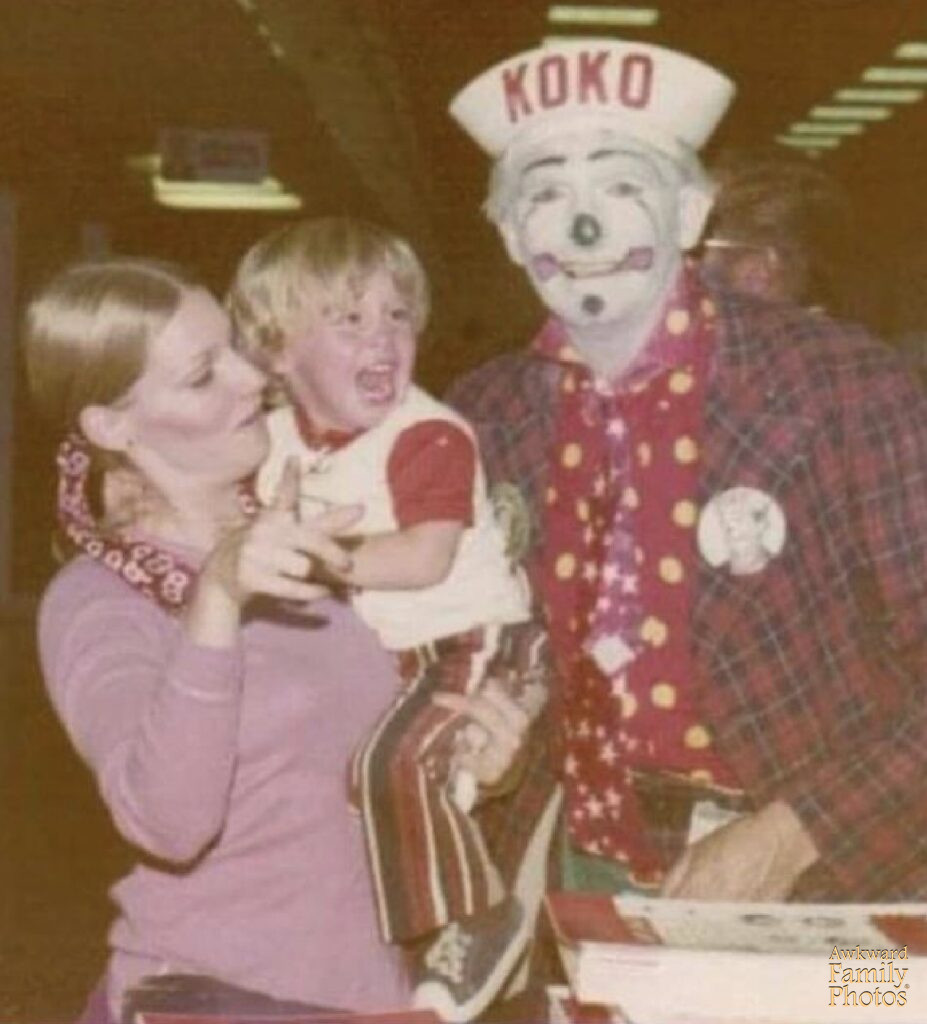 “Me, my son, and Koko the clown in 1973 at the Shrine Circus.”